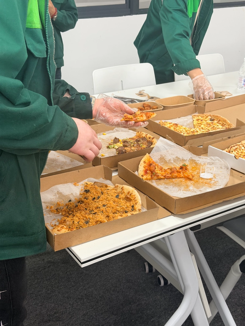 पिज़्ज़ा का एक टुकड़ा, देखभाल का संकेत। एक साधारण व्यवहार ने चुपचाप टीम को करीब ला दिया।